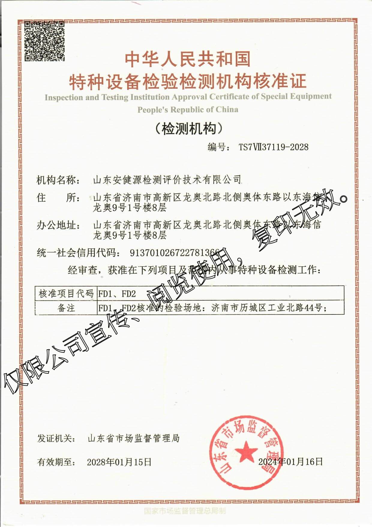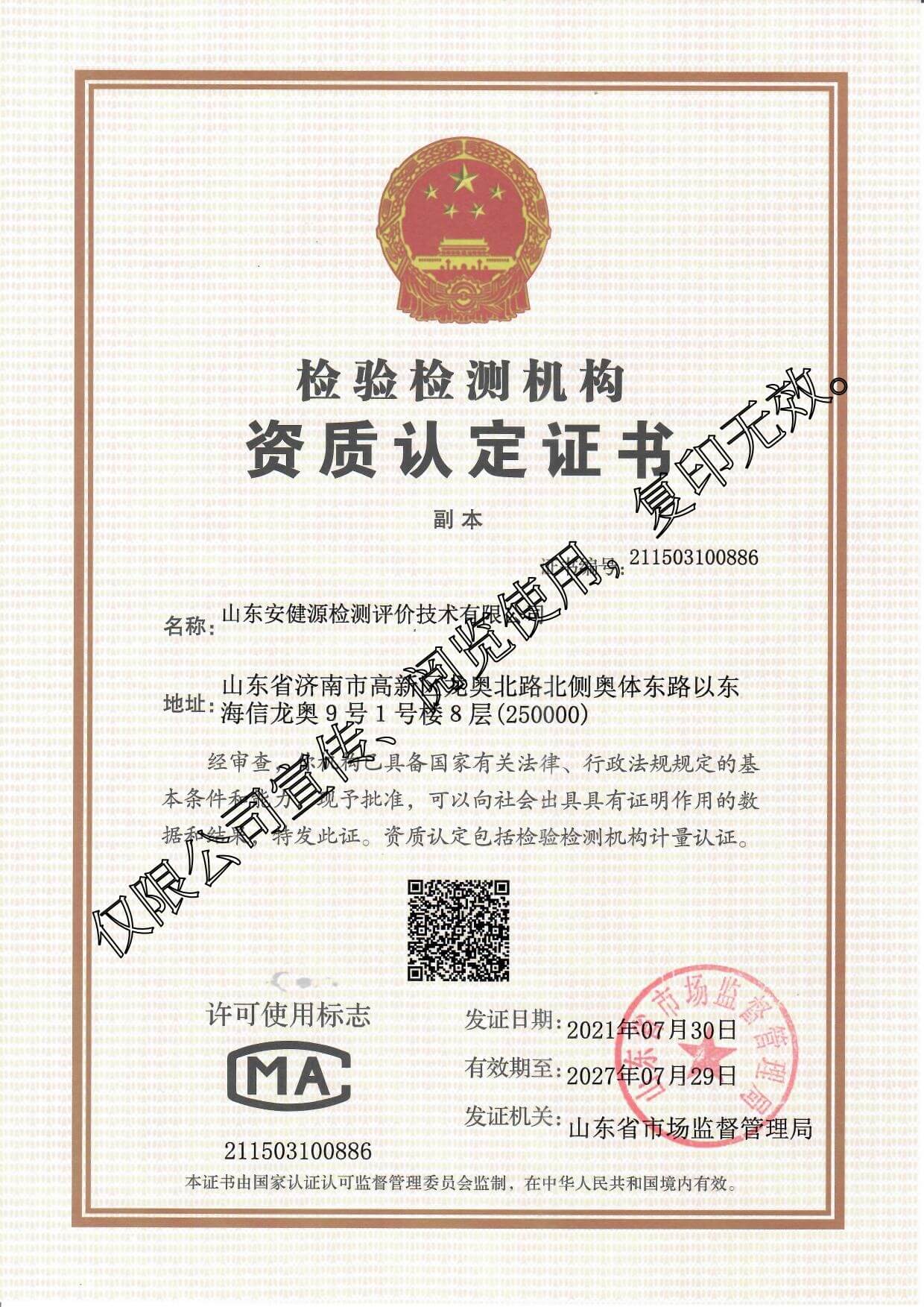 山东安健源检测评价技术有限公司成立于2008年5月9日,是具有独立法人资格的技术服务机构。